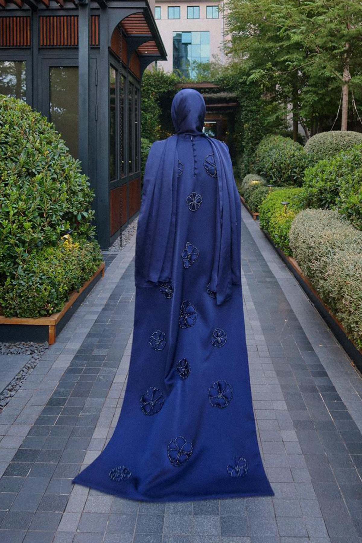 Ürün ortalama 135 cm. Ürün tam kalıptır. Ürünün arkası fermuarlıdır, astarlıdır. Saten krep kumaştan hazırlanmıştır. Kaftan üzeri çiçek işlemelerle hazırlanmıştır. Düz etek formundadır.