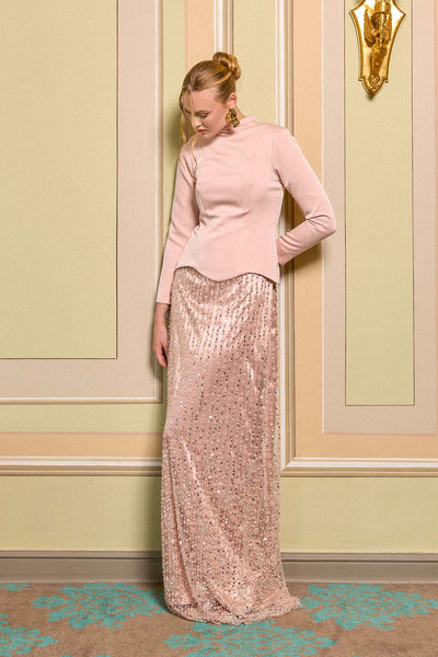 Ürün ortalama 150 cm. Ürünün arkası fermuarlıdır, astarlıdır. Özel üretilmiş ipek kumaş hazırlanmıştır. Önünde piliseden kristal işleme detaylı cepkeni mevcuttur. Kloş etek formuna sahiptir, kuyrukludur.